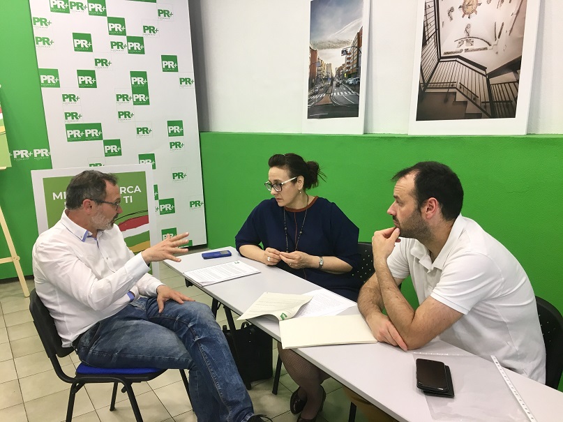 El candidato del Partido Riojano a la Alcaldía de Logroño, Rubén Antoñanzas, acompañado de uno de los miembros de su candidatura, Óscar Fernández, han mantenido esta tarde un encuentro con la Asociación de familias numerosas de La Rioja, con el objetivo de presentarles las medidas de su programa electoral que afectan a las familias.