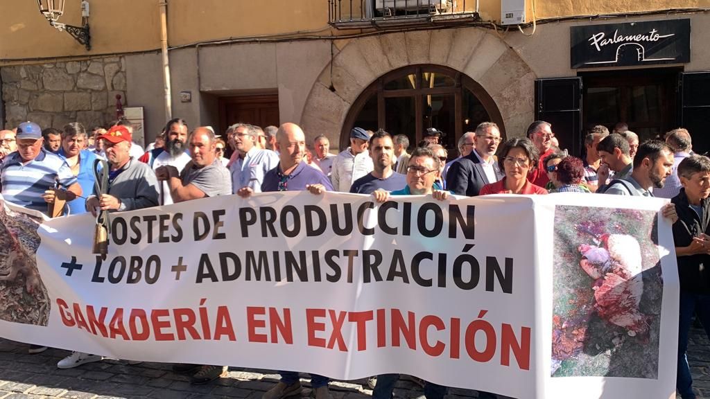 Antoñanzas ha participado hoy, junto a varios responsables del PR+, en la concentración que los ganaderos han realizado para expresar su malestar por el aumento de los ataques del lobo